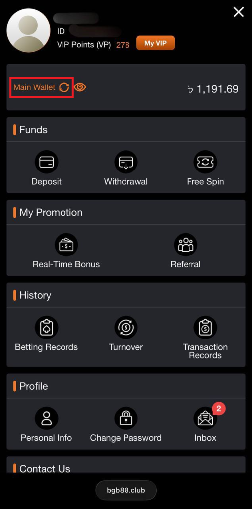 ৫. মেইন ওয়ালেট -এ ফিরে যান এবং পেজটি রিফ্রেশ করুন, যাতে নিশ্চিত হতে পারেন যে বোনাসটি যোগ হয়েছে।